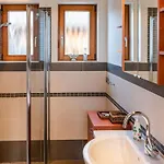 Along with a stone fireplace, Nice Home In Lbeck With Kitchen includes a TV. The villa comes with a bathroom with a separate toilet, a bath, and a shower.